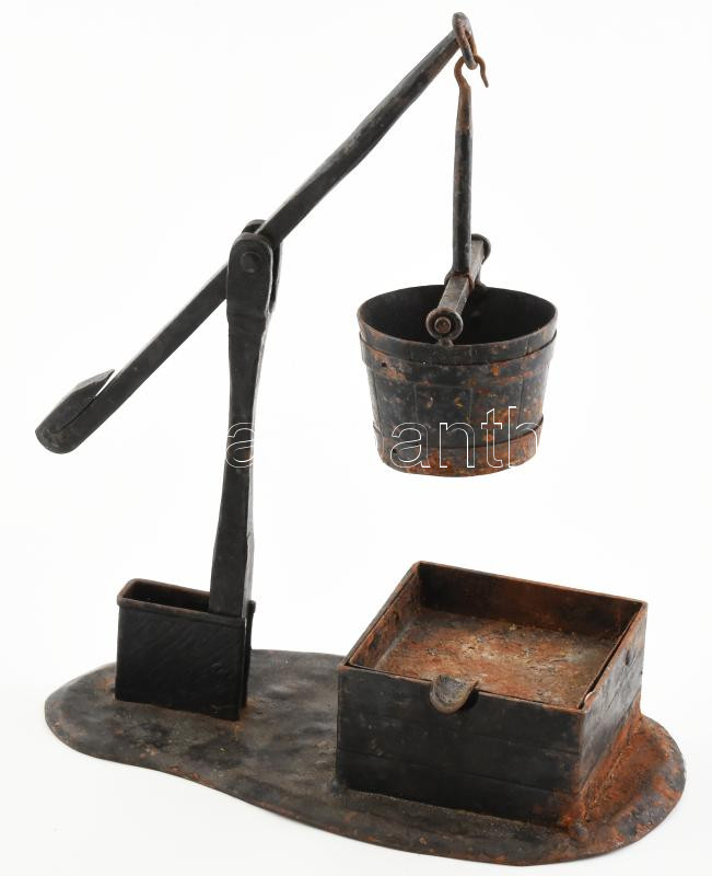 Gémeskút formájú dohányzó készlet. Kovácsoltvas, korrodált. 28 cm https://www.darabanth.com/de/442-Fernauktion/442.0/Kunst-Dokumente-andere-Sammelgebiete/Flohmarkt~500015/Gemeskut-formaju-dohanyzo-keszlet-Kovacsoltvas-korrodalt-28-cm~II2906059