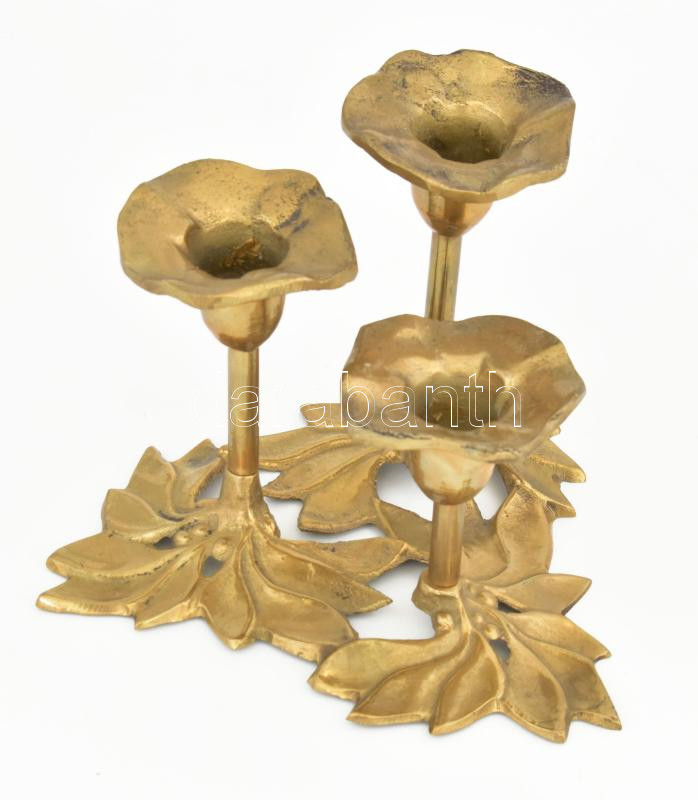 Beschreibung: Gyertyatartó, réz, 3 szálas, jelzés nélkül, m: 12,5 cm