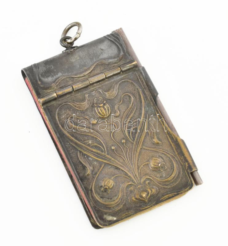 Szecessziós rugós notesz, réz, akasztható, 7x4 cm https://www.darabanth.com/de/442-Fernauktion/442.0/Kunst-Dokumente-andere-Sammelgebiete/Flohmarkt~500015/Szecesszios-rugos-notesz-rez-akaszthato-7x4-cm~II2907683
