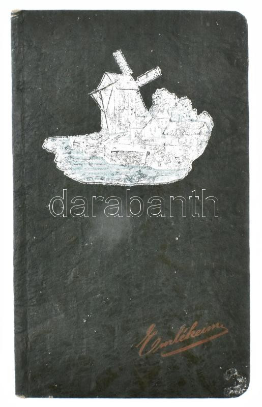 Beschreibung: 1926-1930 Régi emlékkönyv, bejegyzésekkel, rajzokkal, szélmalmot ábrázoló borítóval, 18,5x11 cm