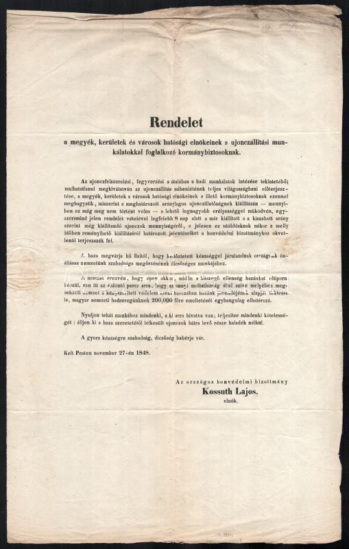 1848 Pest, rendelet a megyék, kerületek és városok hatósági elnökeinek... https://www.darabanth.com/de/442-Fernauktion/442.0/Kunst-Dokumente-andere-Sammelgebiete/Militaria~1000001/1848-Pest-rendelet-a-megyek-keruletek-es-varosok-hatosagi-elnokeinek-es-az-ujoncallita~II2912056