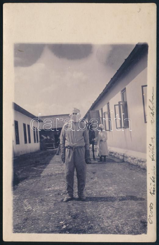 cca 1916 Orvos védőöltözetben tifusz elleni védőoltáson fotólap https://www.darabanth.com/de/442-Fernauktion/442.0/Kunst-Dokumente-andere-Sammelgebiete/Militaria~1000001/cca-1916-Orvos-vedooltozetben-tifusz-elleni-vedooltason-fotolap~II2908601