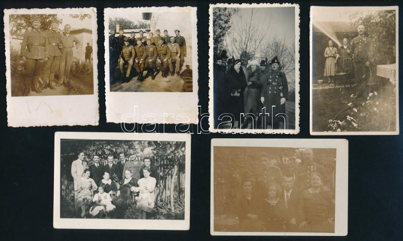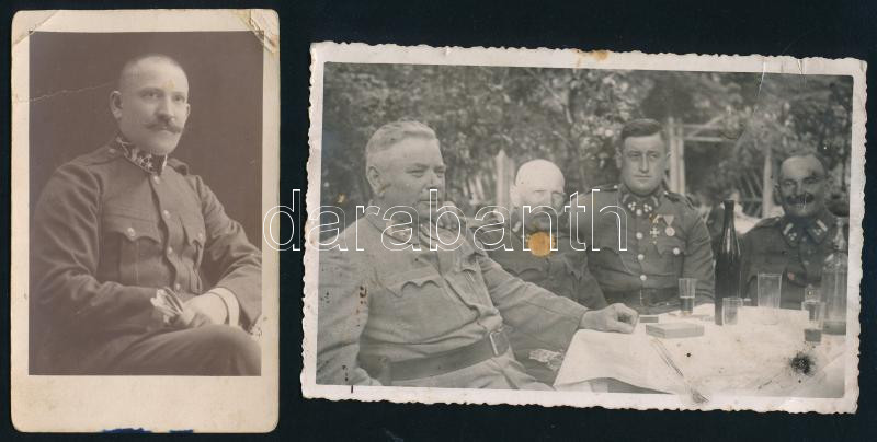 cca 1920-40 Csendőr- és katonaportrék és csoportképek, részben kitüntetéssel dekorált, össz. 8 db fotó és fotólap, részben Zala vármegyéből, egyik pecséttel jelzett, részben sérült és foltos 7,5x6 és 9x14 cm közötti méretekben