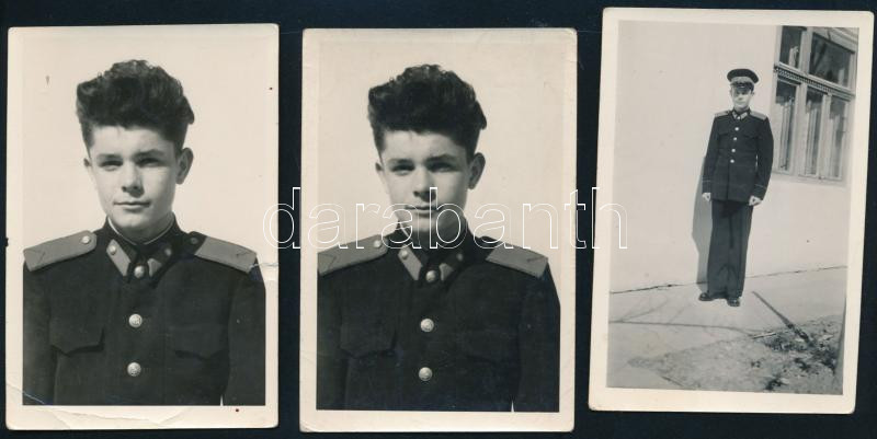 Beschreibung: cca 1957 Rákóczista fiú (a II. Rákóczi Ferenc Katonai Középiskola növendéke), 3 db fotó, 9x6 cm