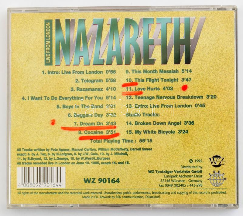 Nazareth - Razamanaz - Live From London. CD, Compilation, WZ Tonträger... https://www.darabanth.com/de/442-Fernauktion/442.0/Kunst-Dokumente-andere-Sammelgebiete/Musik-Schalplatten-und-CD-s-DVD-s~1000030/Nazareth-Razamanaz-Live-From-London-CD-Compilation-WZ-Tontrager-Vertriebs-GmbH-Nemetorsza~II2883966