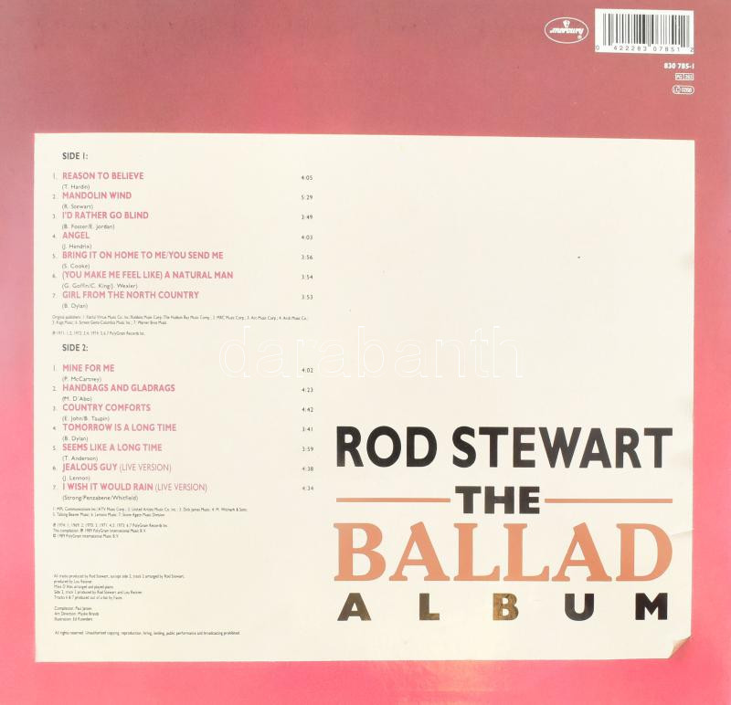 Rod Stewart - The Ballad Album (Válogatás). Vinyl, LP. Mercury, 1989. https://www.darabanth.com/de/442-Fernauktion/442.0/Kunst-Dokumente-andere-Sammelgebiete/Musik-Schalplatten-und-CD-s-DVD-s~1000030/Rod-Stewart-The-Ballad-Album-Valogatas-Vinyl-LP-Mercury-1989~II2878788