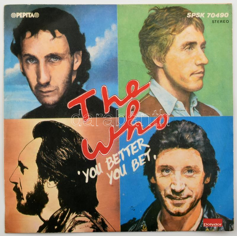 The Who You better, you bet vinyl kislemez 1981 Pepita VG https://www.darabanth.com/de/442-Fernauktion/442.0/Kunst-Dokumente-andere-Sammelgebiete/Musik-Schalplatten-und-CD-s-DVD-s~1000030/The-Who-You-better-you-bet-vinyl-kislemez-1981-Pepita-VG~II2914284