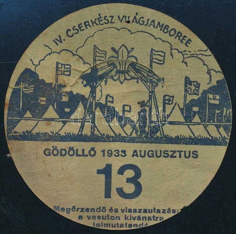 1933 IV. Cserkész Világjamboree Gödöllő, utazási kedvezményre jogosító... https://www.darabanth.com/de/442-Fernauktion/442.0/Kunst-Dokumente-andere-Sammelgebiete/Pfadfinder~500030/1933-IV-Cserkesz-Vilagjamboree-Godollo-utazasi-kedvezmenyre-jogosito-kituzo-a-13-napra~II2887057