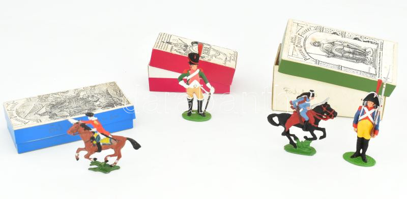 Beschreibung: 4 db kézzel festett cseh ólomkatona (3 eredeti dobozzal), m: 5 - 7,5 cm