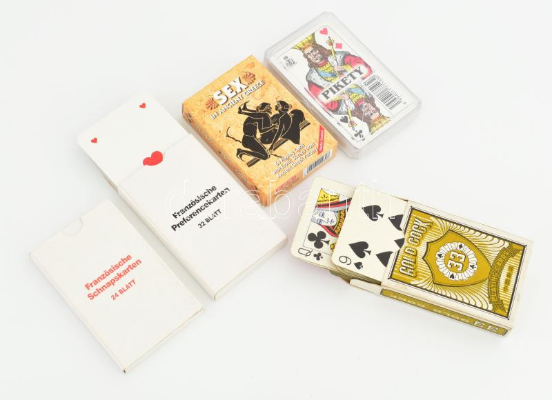 Beschreibung: 6 pakli kártya, zömmel francia kártya
