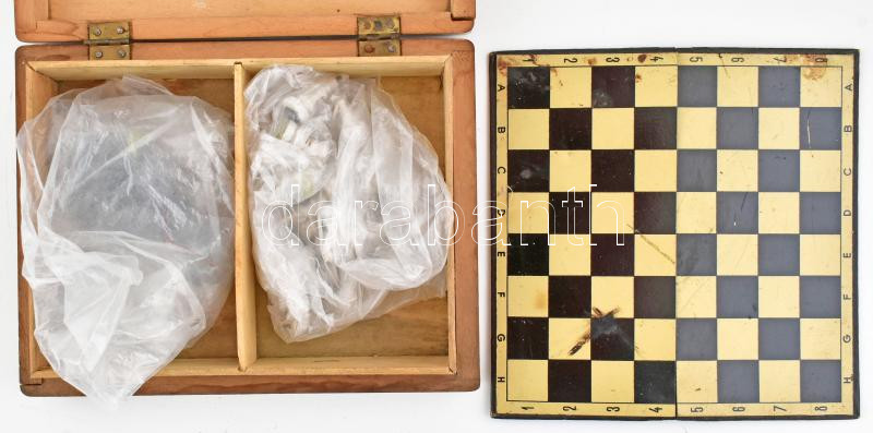 Beschreibung: Mágneses úti sakk készlet repedt dobozzal