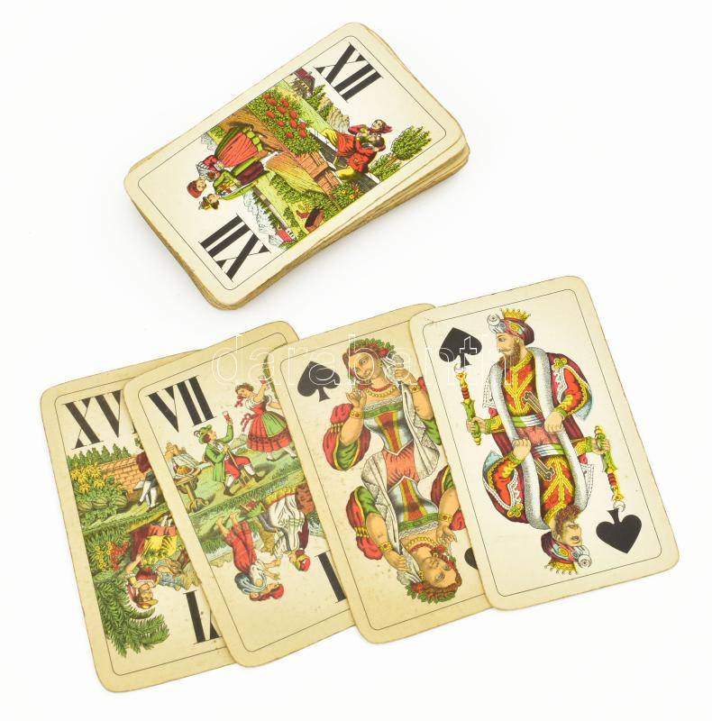 Tarokk kártya, 42 lap, Játékkártyagyár és Nyomda, 13x7,5 cm https://www.darabanth.com/de/442-Fernauktion/442.0/Kunst-Dokumente-andere-Sammelgebiete/Spielzeuge~500016/Tarokk-kartya-42-lap-Jatekkartyagyar-es-Nyomda-13x7-5-cm~II2912136