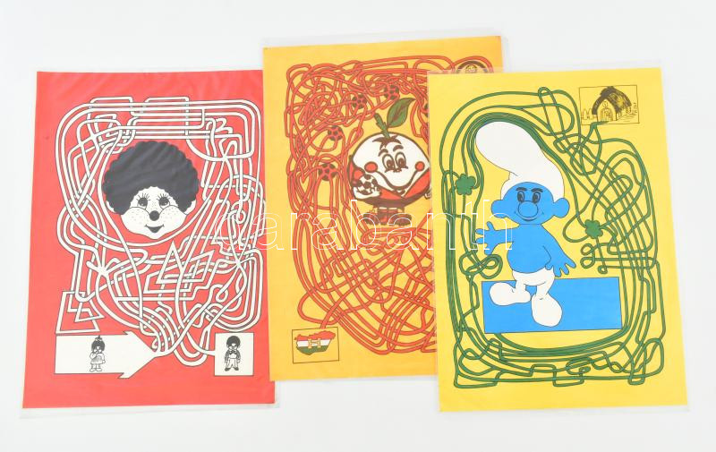 cca 1970 Labirintus játék, 3 db, közte hupikék törpikés is, 28x20 cm https://www.darabanth.com/de/442-Fernauktion/442.0/Kunst-Dokumente-andere-Sammelgebiete/Spielzeuge~500016/cca-1970-Labirintus-jatek-3-db-kozte-hupikek-torpikes-is-28x20-cm~II2911017