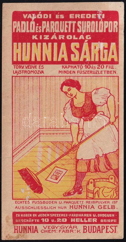 Hunnia Sárga padló súrolópor számolócédula https://www.darabanth.com/de/442-Fernauktion/442.0/Kunst-Dokumente-andere-Sammelgebiete/Werbungen~500026/Hunnia-Sarga-padlo-surolopor-szamolocedula~II2912420