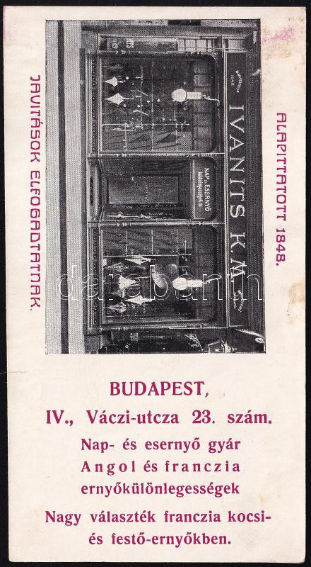 Ivanits K. M. nap- és esernyőgyár számolócédula https://www.darabanth.com/de/442-Fernauktion/442.0/Kunst-Dokumente-andere-Sammelgebiete/Werbungen~500026/Ivanits-K-M-nap-es-esernyogyar-szamolocedula~II2912424