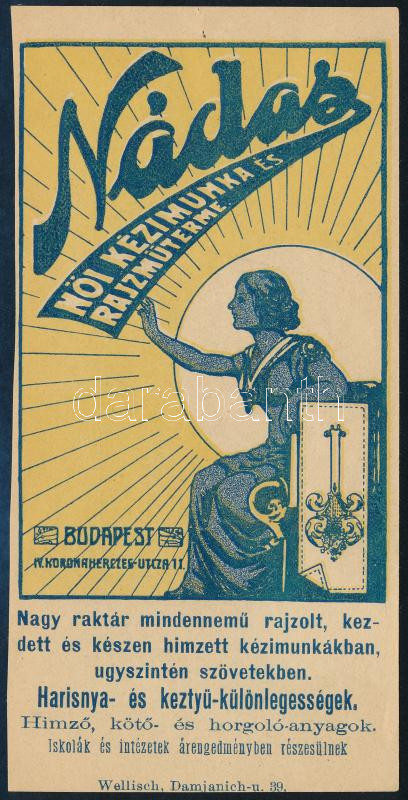 Nádas női kézimunka és rajzműterme Budapest számolócédula https://www.darabanth.com/de/442-Fernauktion/442.0/Kunst-Dokumente-andere-Sammelgebiete/Werbungen~500026/Nadas-noi-kezimunka-es-rajzmuterme-Budapest-szamolocedula~II2907376