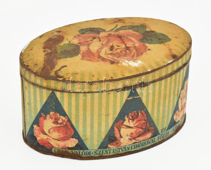 cca 1930 Szent István cikória kávé fémdoboz, kopott, rozsdafoltos, 14x... https://www.darabanth.com/de/442-Fernauktion/442.0/Kunst-Dokumente-andere-Sammelgebiete/Werbungen~500026/cca-1930-Szent-Istvan-cikoria-kave-femdoboz-kopott-rozsdafoltos-14x9x7-cm~II2912488