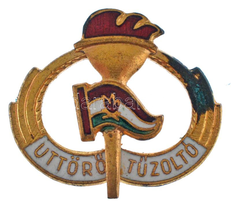 ~1970-1980. "Úttörő Tűzoltó" zománcozott fém jelvény (22x24mm) T:XF patina
