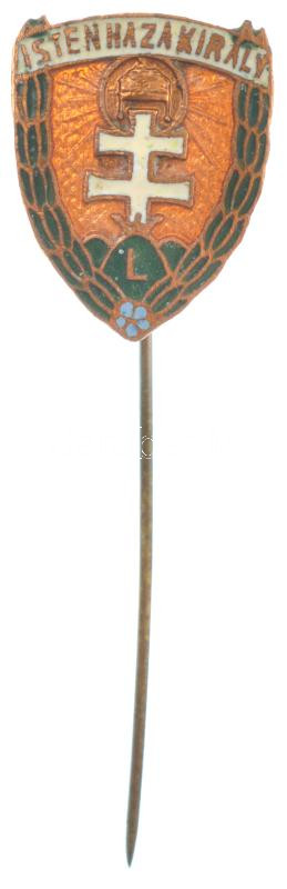 Beschreibung: ~1940. "Isten Haza Király" zománcozott bronz levente jelvény (18x14mm) T:AU