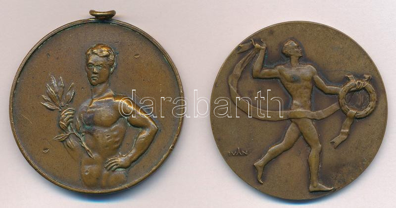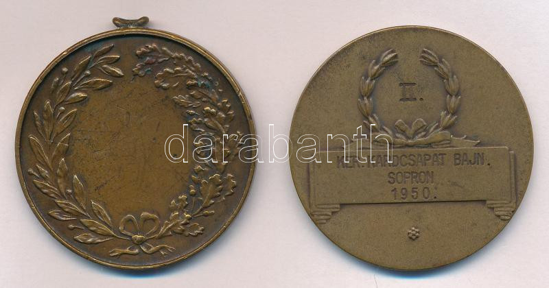 Beschreibung: Iván István (1905-1968) 1950. "Ker. kardcsapat bajnokság Sopron 1950. II." bronz díjérem + bronz díjérem gravírozás és jelzés nélkül (40mm) T:VF
