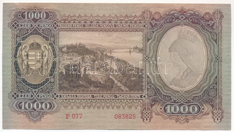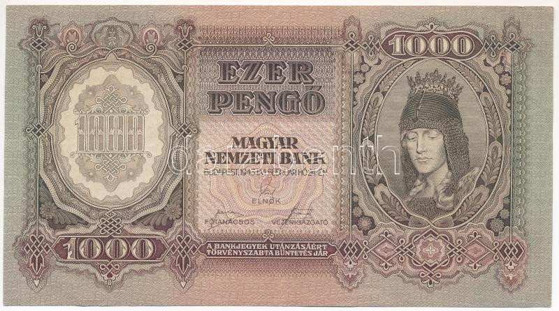 1943. 1000P T:F szép papír Adamo P21 https://www.darabanth.com/de/442-Fernauktion/442.0/Numismatik/Ungarische-Banknoten~1500007/1943-1000P-TF-szep-papir-Adamo-P21~II2910669