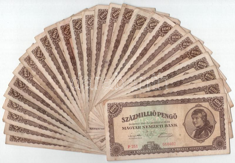 Adamo P27 https://www.darabanth.com/de/442-Fernauktion/442.0/Numismatik/Ungarische-Banknoten~1500007/1946-100000000P-28x-TF-VG-Adamo-P27~II2905742