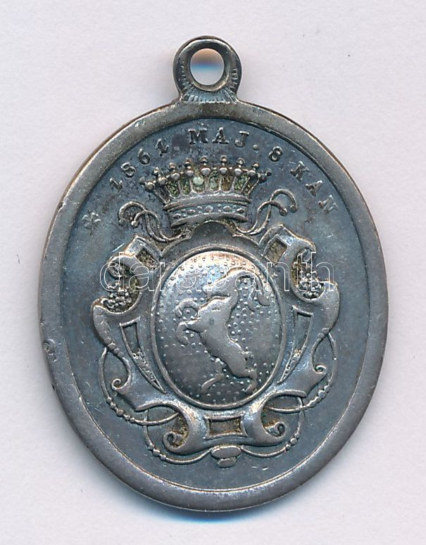 Beschreibung: 1861. "Széki gróf Teleki László / 1861. máj. 8." jelzett Ag emlékmedál füllel (5,50g/0.750/25x21mm) T:AU,XF patina, kis ph