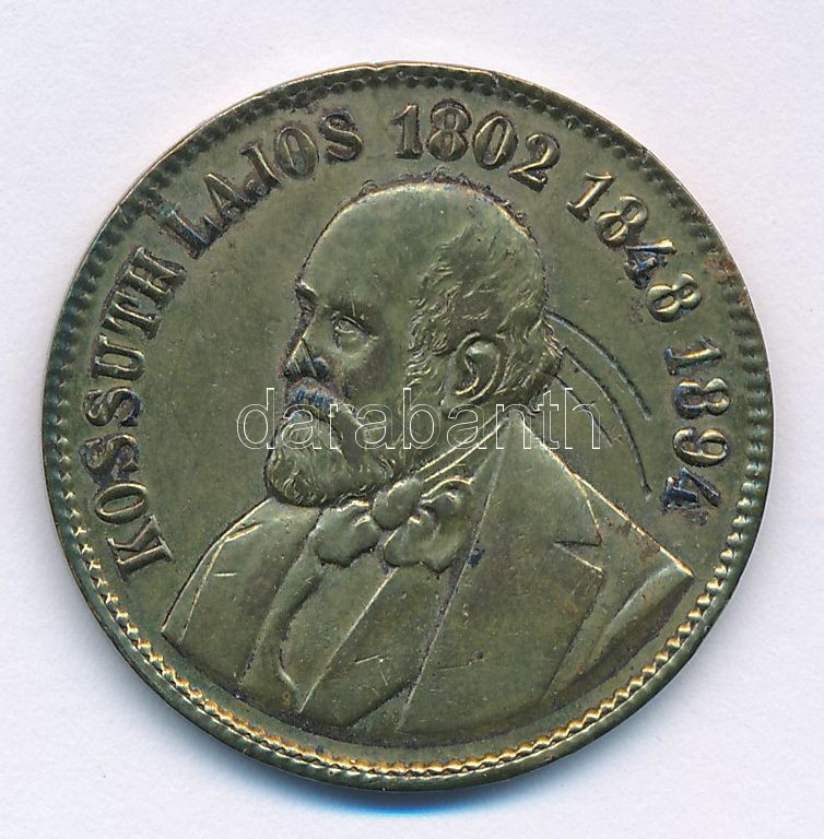 1894. "Kossuth Lajos 1802-1848-1894 / Szabadság, Egyenlőség, Test... https://www.darabanth.com/de/442-Fernauktion/442.0/Numismatik/Ungarische-Gedenkmunzen-Plaketten~1500010/1894-Kossuth-Lajos-1802-1848-1894-Szabadsag-Egyenloseg-Testveriseg-Cu-emlekerem-28mm~II2912809