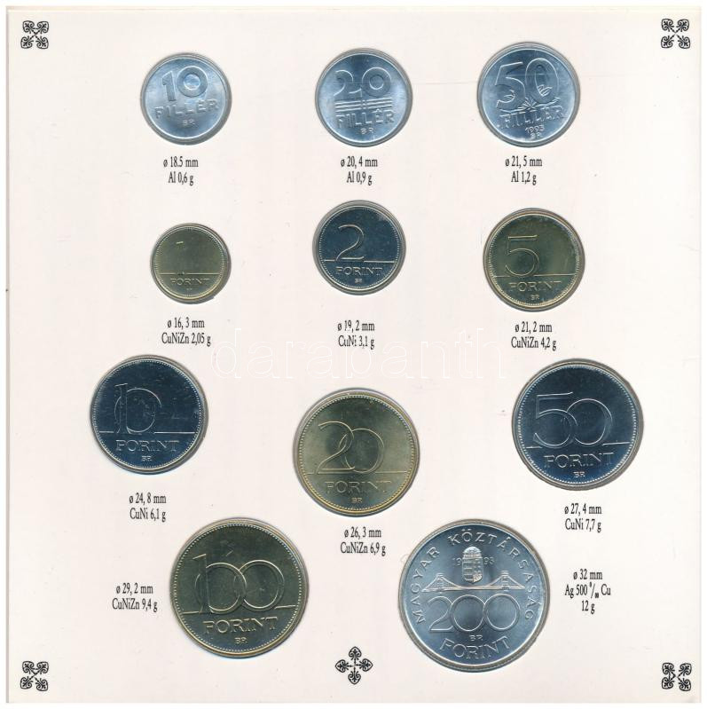 1993. 10f-200Ft (11xklf) forgalmi sor dísztokban, egylapos verzió T:BU... https://www.darabanth.com/de/442-Fernauktion/442.0/Numismatik/Ungarische-Kursmunzsatze~1500009/1993-10f-200Ft-11xklf-forgalmi-sor-disztokban-egylapos-verzio-TBU-Adamo-FO262~II2904282