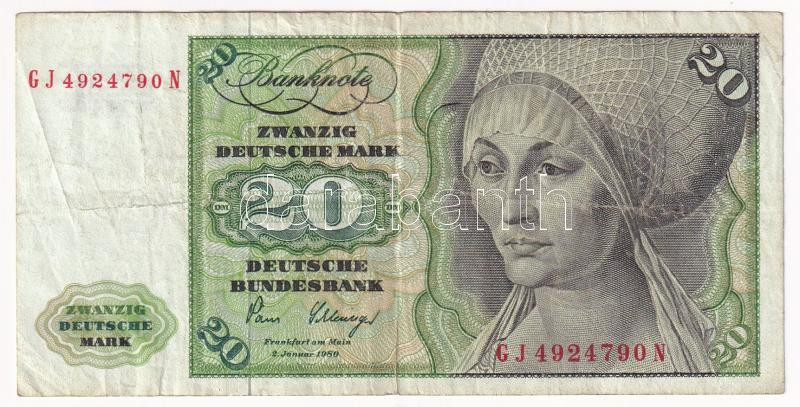 Német Szövetségi Köztársaság 1980. 20M T:F Federal Republic Germany 19... https://www.darabanth.com/de/442-Fernauktion/442.0/Numismatik/Weltweit-Banknoten~1500014/Nemet-Szovetsegi-Koztarsasag-1980-20M-TF-Federal-Republic-Germany-1980-20-Mark-CF-Krause-P~II2883126