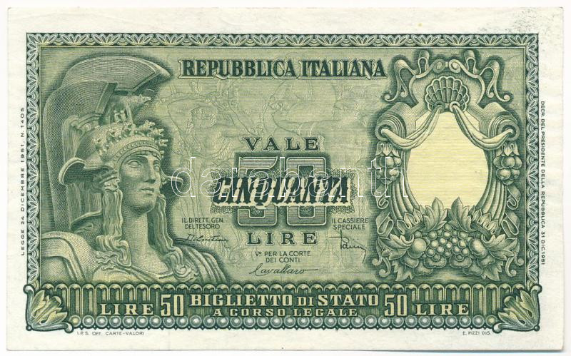 Olaszország 1951. 50L "3291 084732" T:F szép papír