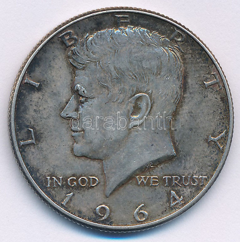 Amerikai Egyesült Államok 1964. 1/2$ Ag "Kennedy" T:AU,XF pa... https://www.darabanth.com/de/442-Fernauktion/442.0/Numismatik/Weltweit-Munzen~1500015/Amerikai-Egyesult-Allamok-1964-12USD-Ag-Kennedy-TAU-XF-patina-USA-1964-12-Dollar-Ag-Kennedy~II2906471