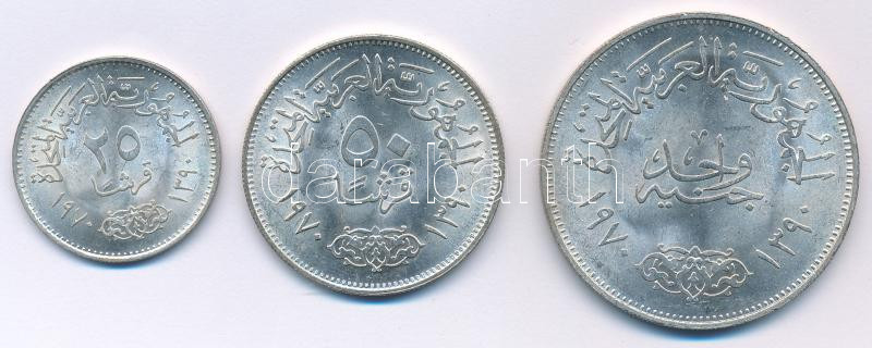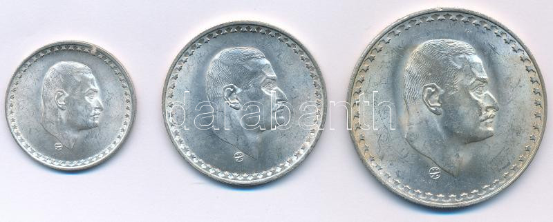 Egyiptom 1970. 25p Ag + 50p Ag + 1P Ag "Nasser sor" T:AU kis karc Egypt 1970. 25 Piastres Ag + 50 Piastres Ag + 1 Pound Ag "Nasser" C:AU small scratch Krause KM#422, KM#423, KM#425