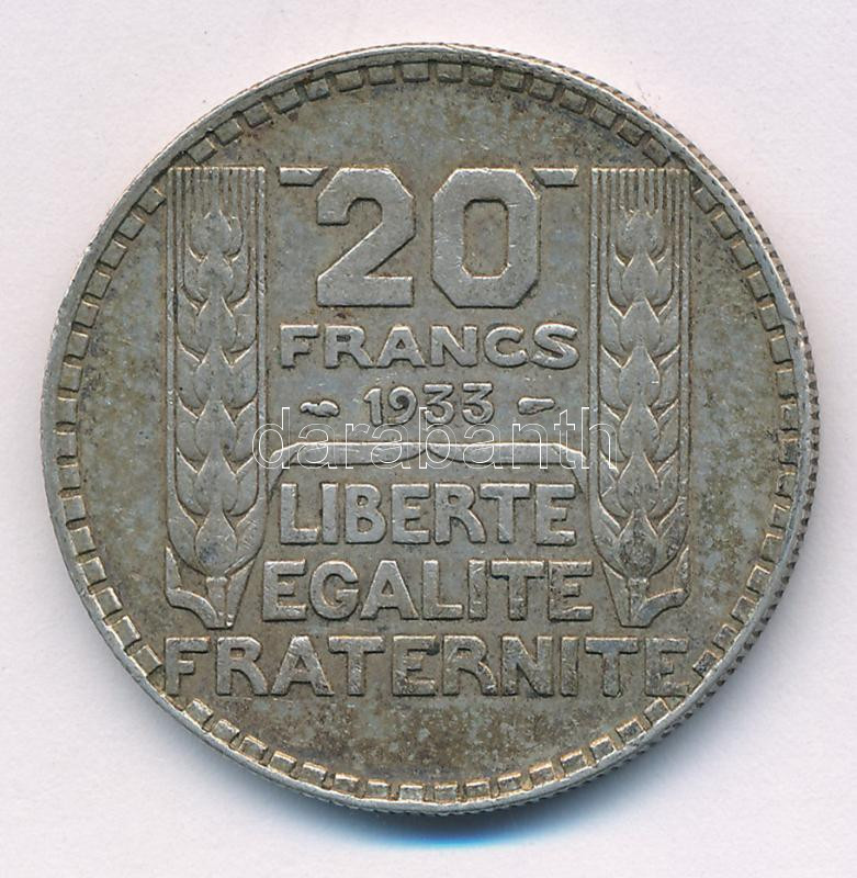 Franciaország 1933. 20Fr Ag T:XF patina France 1933. 20 Francs Ag C:XF patina Krause KM#879