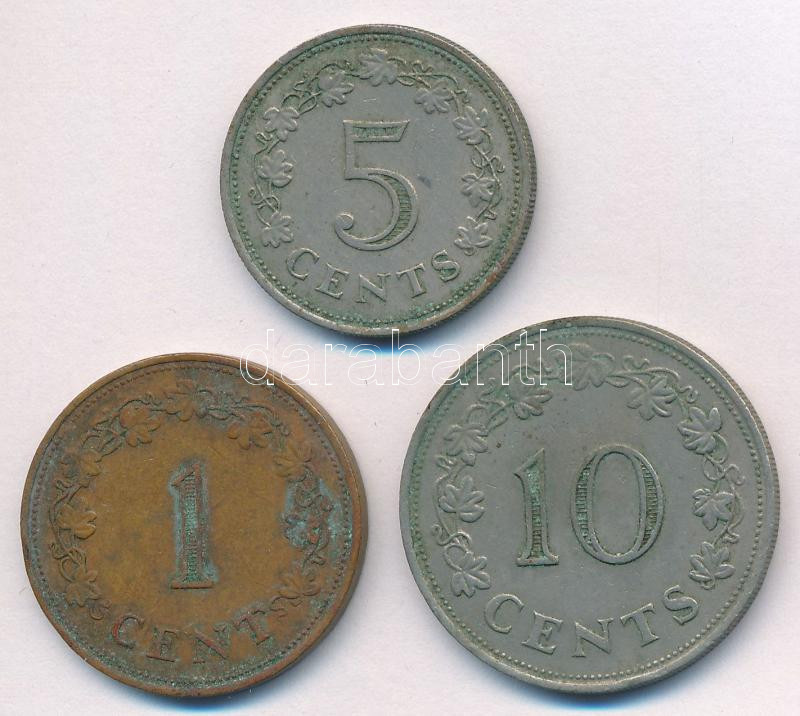Málta 1972. 1c bronz + 5c Cu-Ni + 10c Cu-Ni T:XF Malta 1972. 1 Cent bronze + 5 Cents Cu-Ni + 10 Cents Cu-Ni C:XF