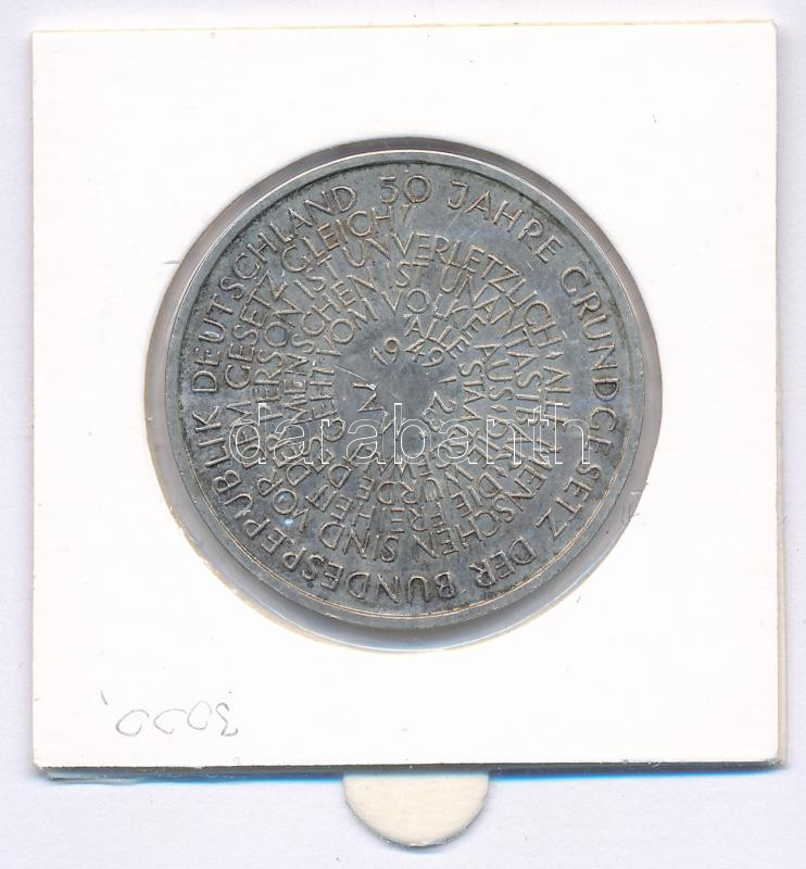 Németország 1999D 10M Ag "50 éves a Szövetségi Köztársaság Alkotmánya" T:AU patina Germany 1999D 10 Mark Ag "50th Anniversary of the Bundesrepublik Constitution" C:AU patina Krause KM#196