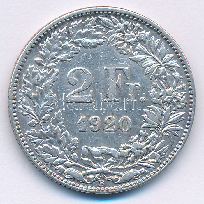 Switzerland 1920. 2 Francs Ag C:AU,XF