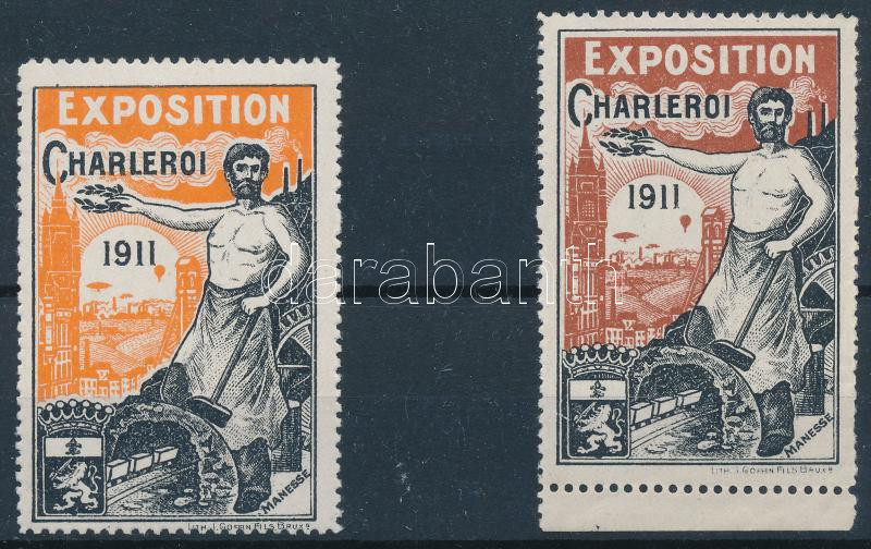 Beschreibung: 1911 2 db klf. Charleroi világkiállítás levélzáró