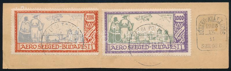 Beschreibung: 1925 Szeged-Budapest 2 db levélzáró Bélyegkiállítás bélyegzéssel kivágáson