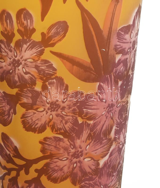 Beschreibung: Gallé jelzéssel: Üveg díszváza, plasztikus virágmintával, jelzett, hibátlan, m: 55 cm