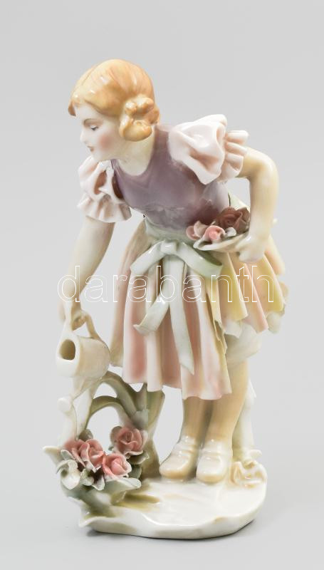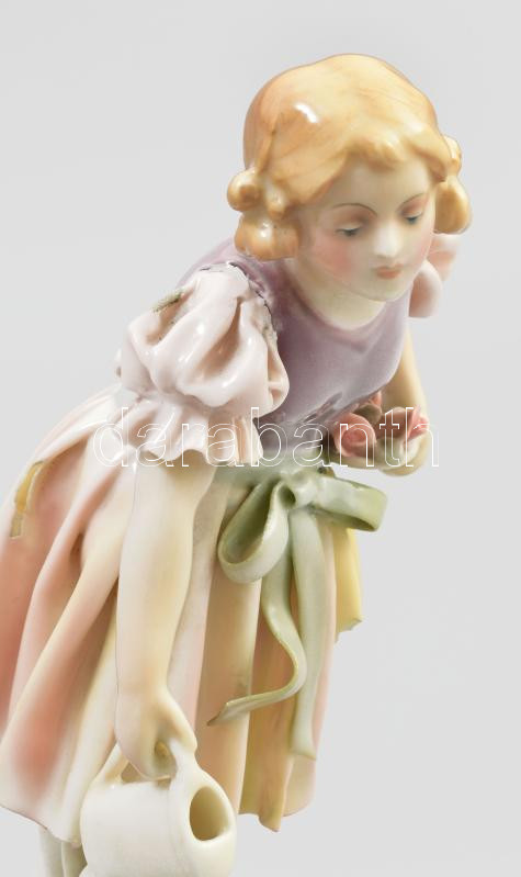 Beschreibung: ENS virágot locsoló lány, jelzett, sérült, m: 18 cm