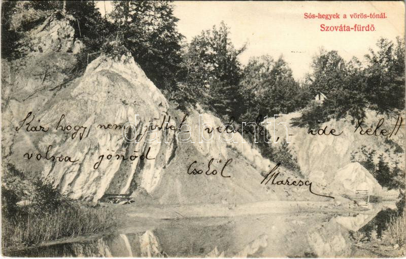 1908 Szováta-fürdő, Baile Sovata; Sós-hegyek, vörös tó. Divald Károly ... https://www.darabanth.com/de/443-Fernauktion/443.0/Ansichtskarten/Siebenburgen~2000006/1908-Szovata-furdo-Baile-Sovata-Sos-hegyek-voros-to-Divald-Karoly-10-1908-salt-rock-~II2891144