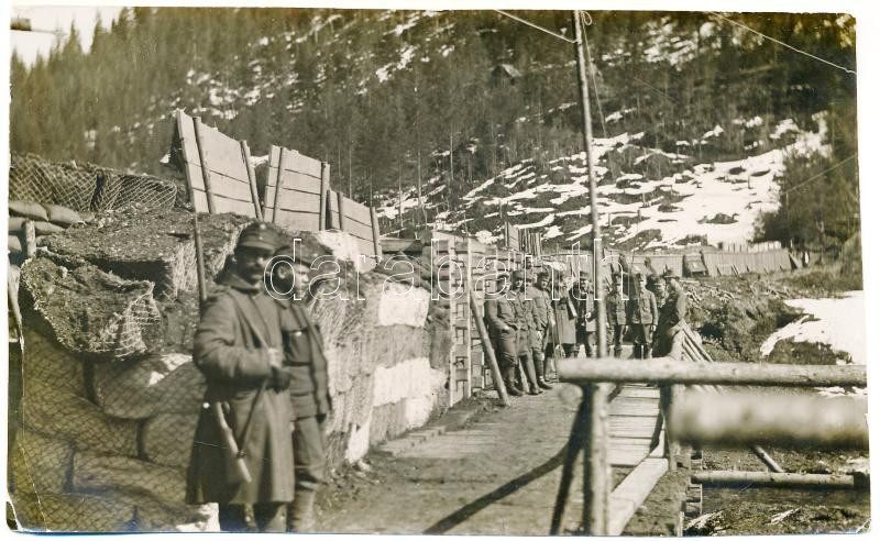 Beschreibung: 1916 Cibó, Zibau, Tibau; katonák építik a völgyzárlatot / WWI K.u.k. military, soldiers building a valley closure. photo (non PC)