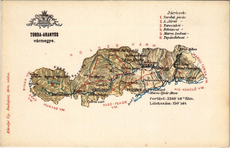 Torda-Aranyos vármegye térképe. Kiadja Károlyi Gy. / Map of Mures-Turd... https://www.darabanth.com/de/443-Fernauktion/443.0/Ansichtskarten/Siebenburgen~2000006/Torda-Aranyos-varmegye-terkepe-Kiadja-Karolyi-Gy-Map-of-Mures-Turda-county~II2888624