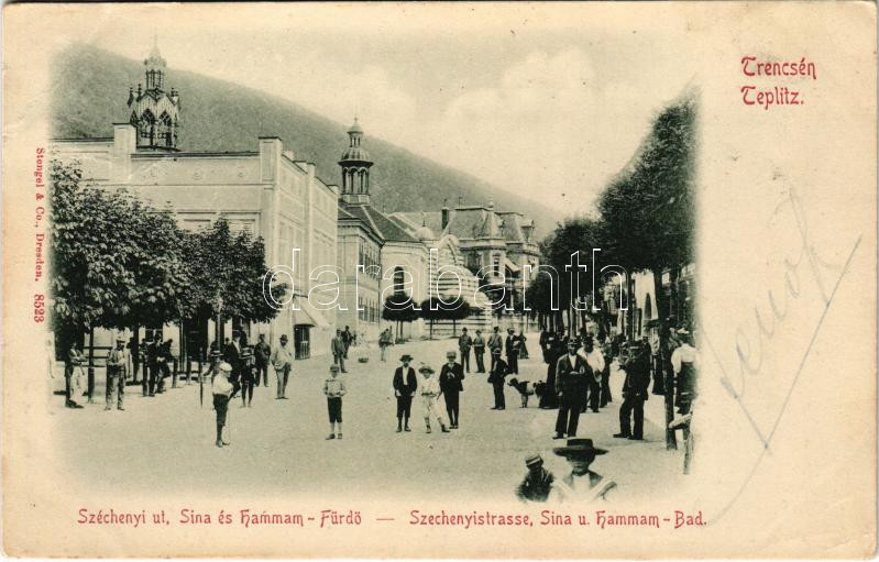 1898 (Vorläufer) Trencsénteplic, Trencianske Teplice; Széchenyi út, Si... https://www.darabanth.com/de/443-Fernauktion/443.0/Ansichtskarten/Slowakei~2000007/1898-Vorlaufer-Trencsenteplic-Trencianske-Teplice-Szechenyi-ut-Sina-es-Hammam-furdo-st~II2925089