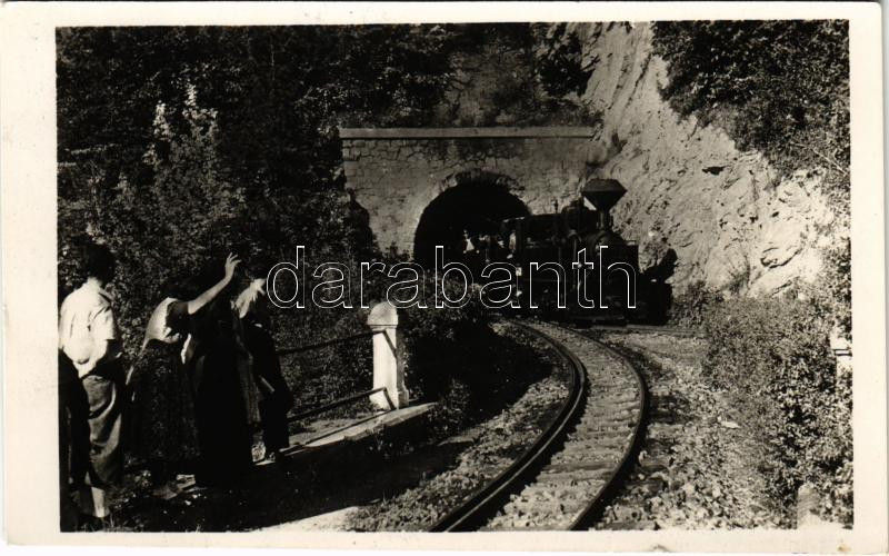 Beschreibung: 1949 Lillafüred (Miskolc), Erdei kisvasút, gőzmozdony az alagútból, vonat