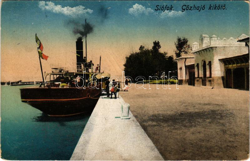Siófok, gőzhajó kikötő (ázott / wet damage) https://www.darabanth.com/de/443-Fernauktion/443.0/Ansichtskarten/Ungarn~2000005/Siofok-gozhajo-kikoto-azott-wet-damage~II2923848