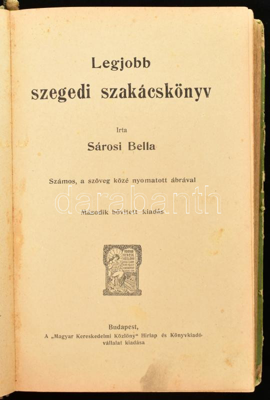 Sárosi Bella: Legjobb szegedi szakácskönyv. Bp., é.n.,"Magyar Kereskedelmi Közlöny", 350 p. Második, bővített kiadás. Kiadói kartonált papírkötés kis kopással a sarkokon, gericnen kis sérülés, egyébként jó állapotban