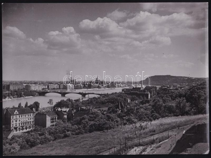 Beschreibung: Szendrő István (1908-2000): Budapesti panoráma az 1945 előtti időszakból, pecséttel jelzett fotó, 17×23 cm