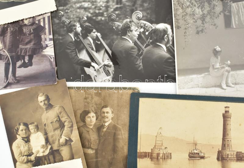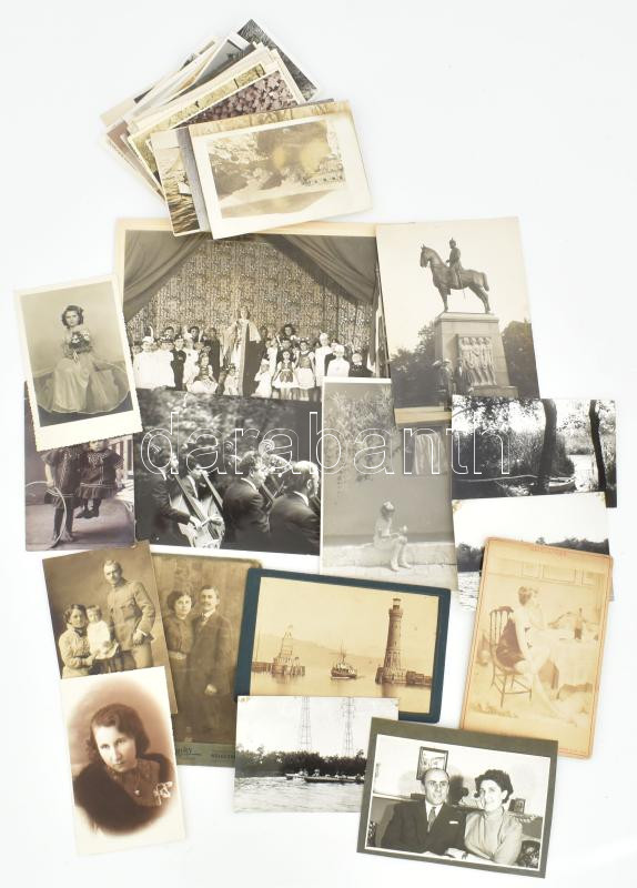 Beschreibung: Vegyes (főként régi) fotó tétel: portrék, csoportképek, társaságok, életképek, stb. Vegyes méret és állapot.